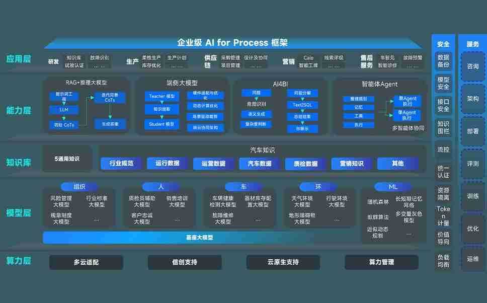 918.com问学智车解决方案是一套基于AI技术的汽车行业智能化系统,,,,覆盖从底层算力到顶层AI应用的全栈方案。。方案由算力层、、模型层和应用层组成:算力层,,,方案支持多种一体机配置,,,,具备云端灵活部署、、多云适配以及动态优化计算资源的能力;模型层,,,918.com问学平台版提供了企业级AI应用一站式构建与管理平台,,支持基于后训练强化技术的汽车企业专属模型的训练、、评测和运营;应用层,,918.com问学DeepSeek版提供包括超级员工、、、智能招采、、、智能营销、、、智能客服、、、、AI for BI等一系列解决方案,,可助力汽车行业实现数字化转型,,让管理更智能、、响应更敏捷。。。。